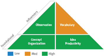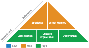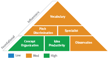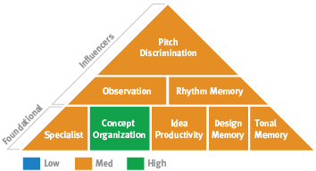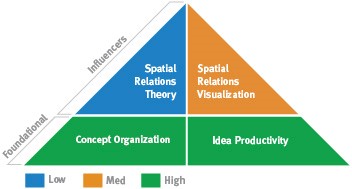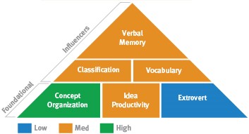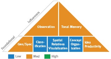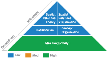 This pattern combines idea-rich (Idea Productivity) Pragmatic Problem Solving (lower Classification and Concept Organization) with intangible, practical spatial abilities (lower Spatial Relations Theory and Visualization). The first ability to take into account is your Idea Productivity. Strong Idea Productivity can help with problem solving because it allows you to come up with many possibilities. In communicating, since you are able to think of different ways to put your ideas, you may find that you are able to explain things to others quite easily. This can help in situations in which you are teaching or convincing others of the rightness of your ideas.