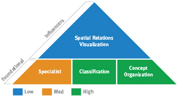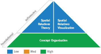 This pattern combines Analytical Problem Solving (Concept Organization) with intangible, practical spatial abilities (lower Spatial Relations Theory and Visualization). The first ability to take into account is your strong Concept Organization. With strong Concept Organization, you are able to solve problems most easily by projecting logical consequences into the future. This ability also enables you to communicate your ideas to other people in a way that they can easily understand. People with this particular combination of abilities often enjoy functioning in a planning role. They are able to deal with problems in a rigorous, logical and linear manner that lends itself easily to projections and forecasting the future.